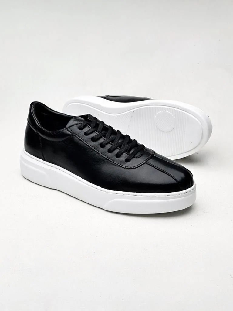 IBAY BLACK WHITE JOHN ERKEK HAKİKİ DERİ GÜNLÜK AYAKKABI SİYAH BEYAZ - 42