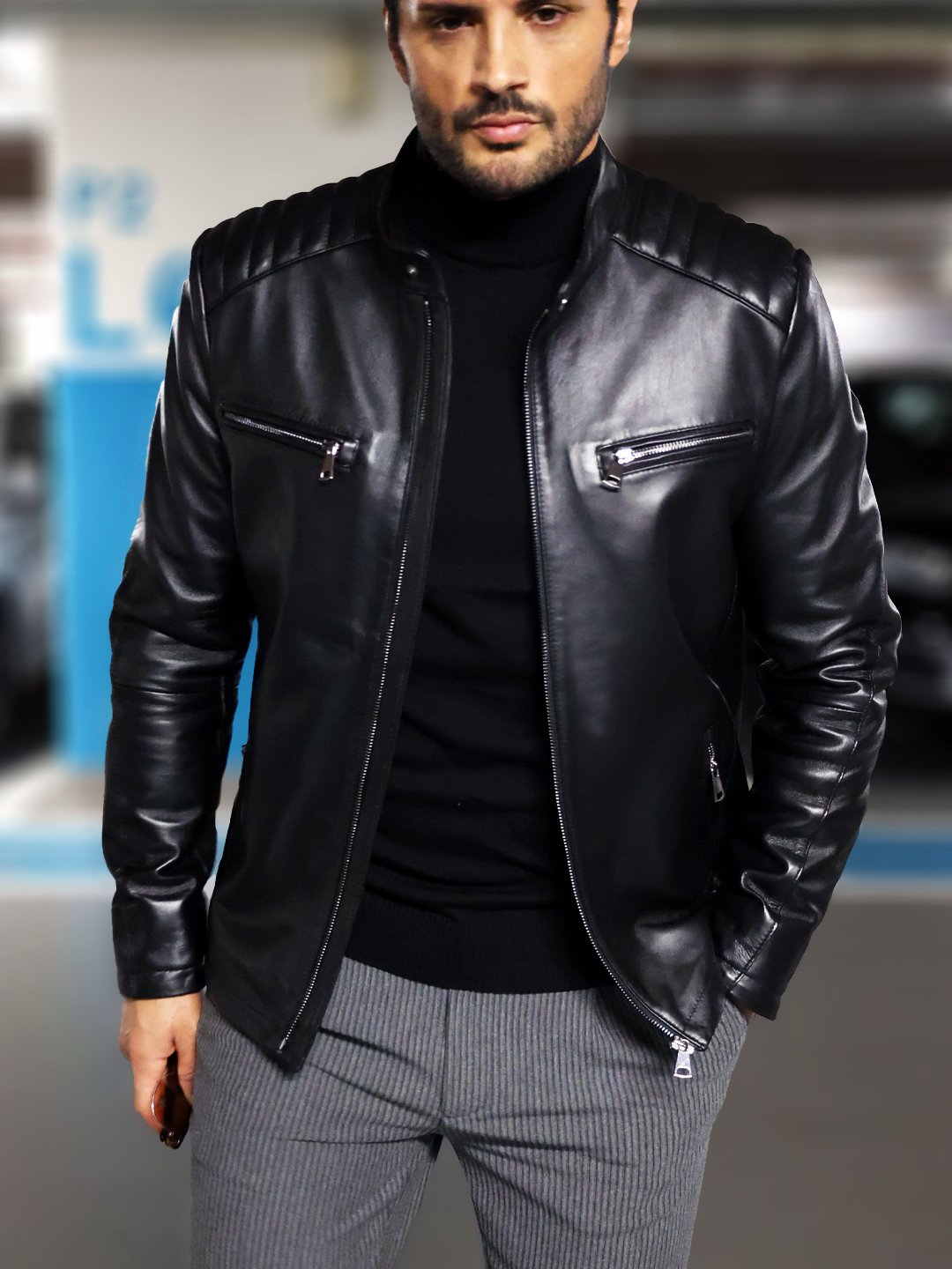 JOHN DAWID ELVIS ECHTLEDERMANTEL SCHWARZ - 4XL