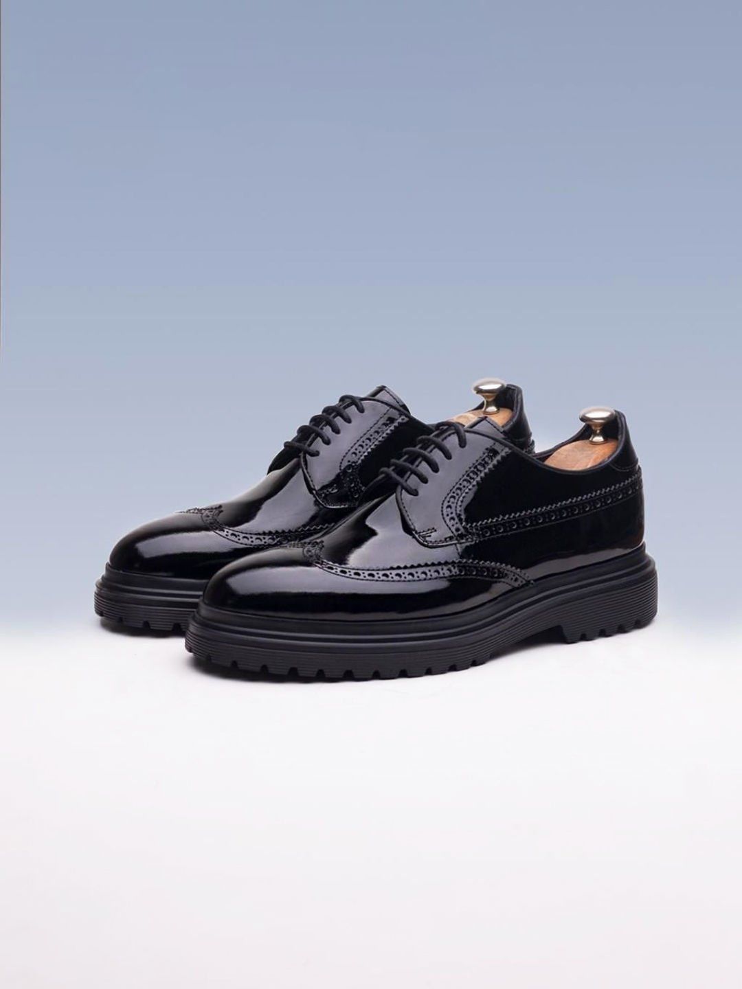 KLASSISCHE SCHUHE AUS PATENTSCHWARZEM PERFEKTEM ECHTLEDER SCHWARZES Lackleder - 44