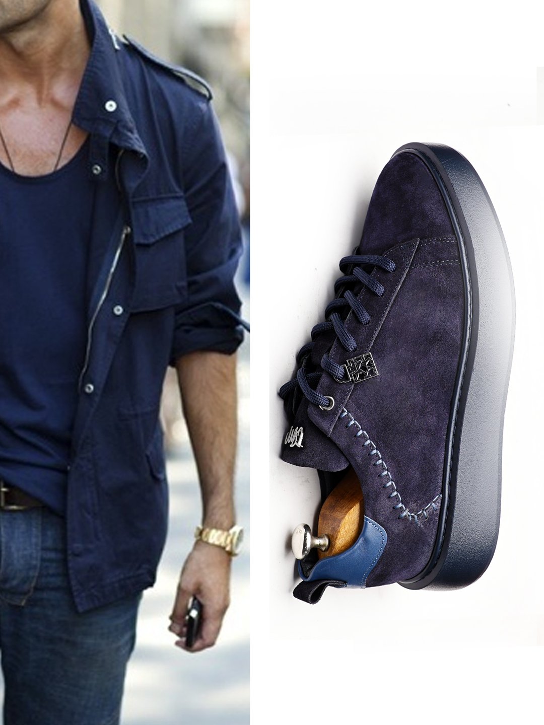 NAVY BLUE FUNNY LACİVERT SÜET DERİ ERKEK GÜNLÜK AYAKKABI LACİVERT SÜET - 46