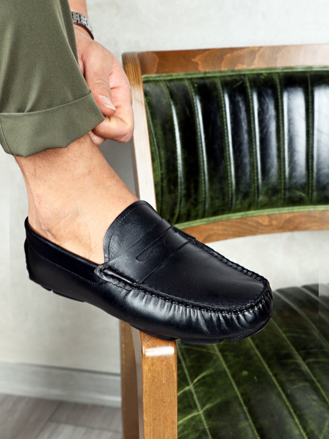 SCHWARZE SPRING-ECHTLEDER-BEQUEME HERRENSCHUHE SCHWARZ - 43