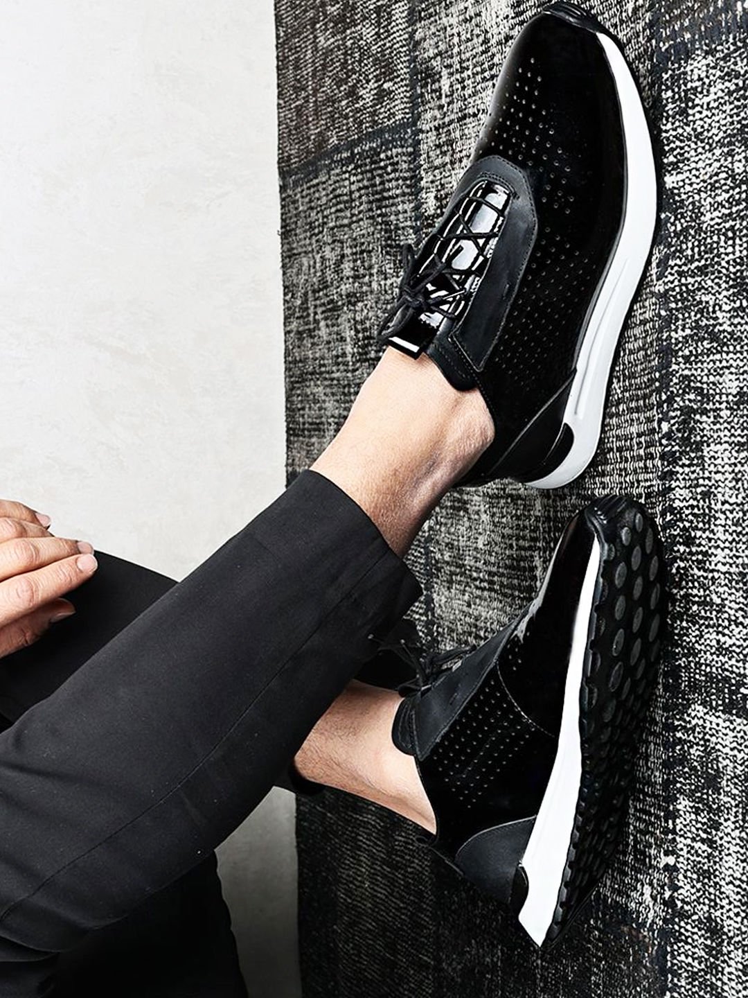 BLACK PATENT LEATHER TAG-X SİYAH ERKEK DERİ GÜNLÜK AYAKKABI SİYAH RUGAN - 40