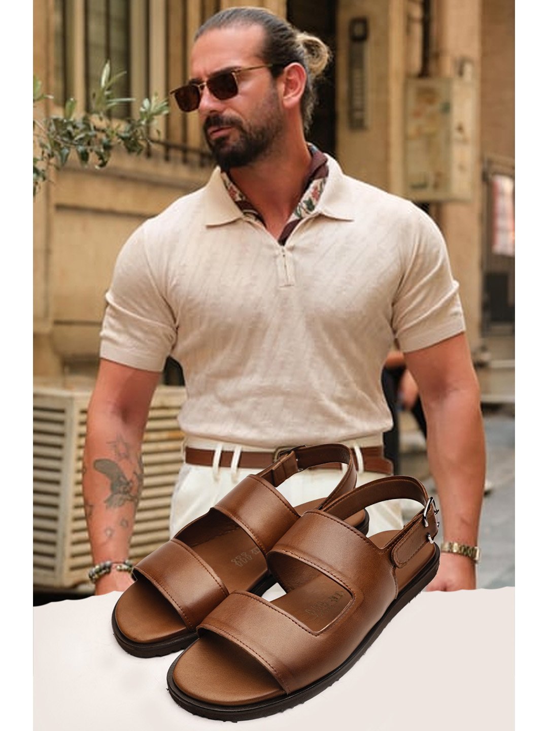 TABACO SOFT HAKİKİ DERİ ERKEK SANDALET AÇIK KAHVE - 46