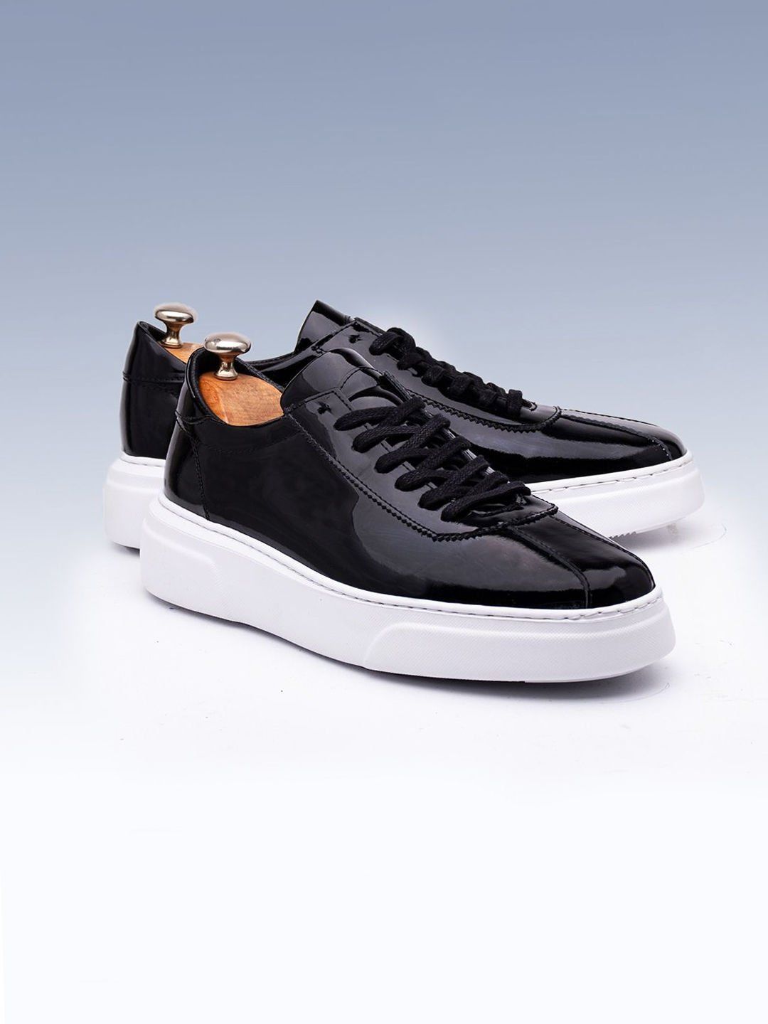 TÄGLICHE SCHUHE AUS PATENTSCHWARZEM JOHN AUS ECHTLEDER SCHWARZES Lackleder - 41