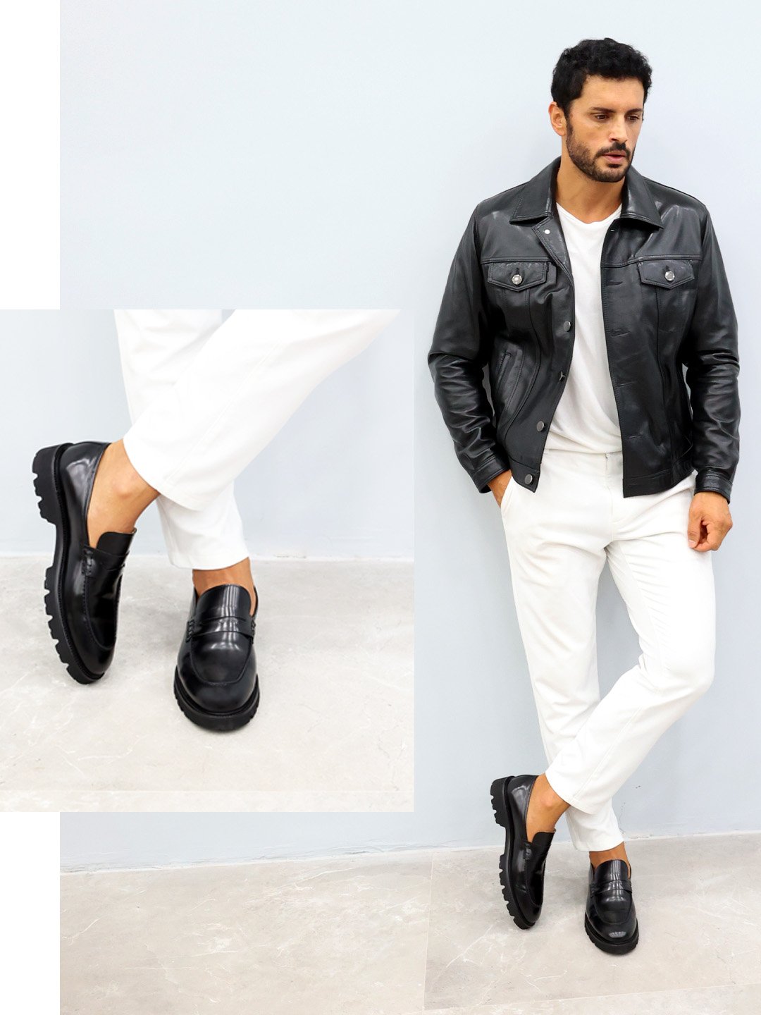 BLACK RAIN GENUINE LEATHER MEN'S CLASSIC SHOES BLACK OPENING - 40