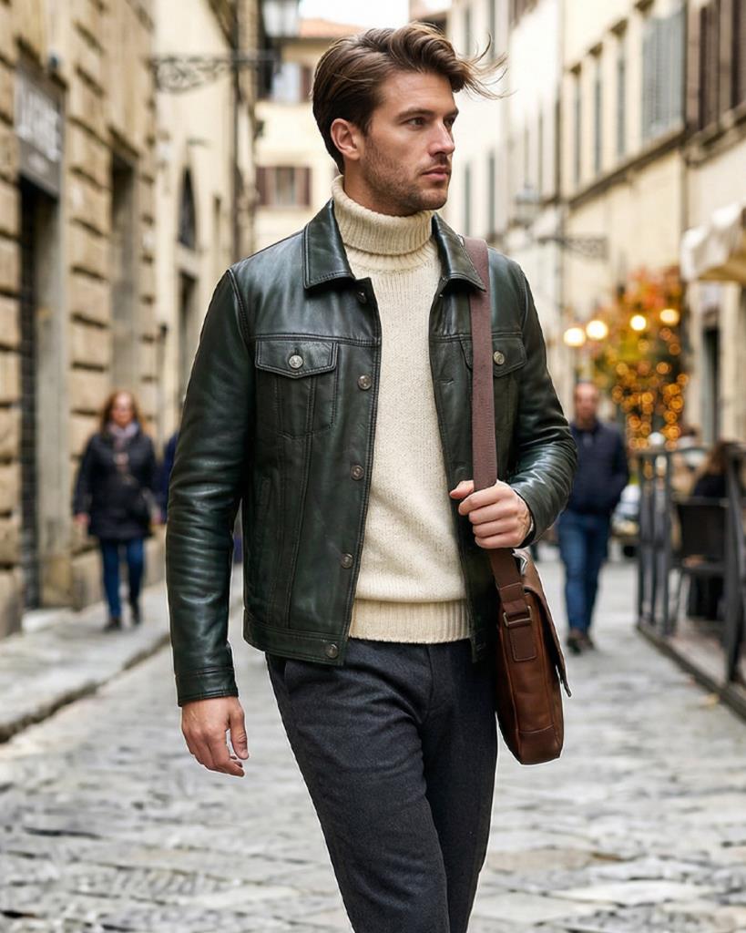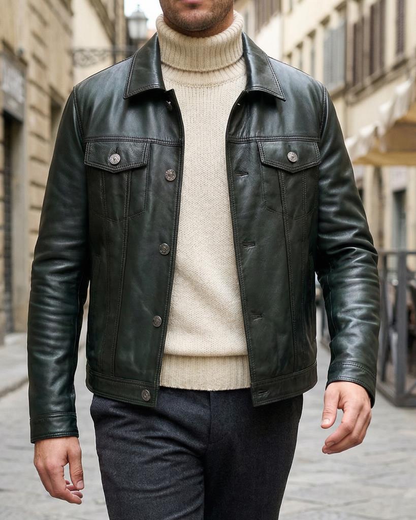 JOHN DAWID GREEN LEVI HAKİKİ DERİ ÇEKET YEŞİL - L