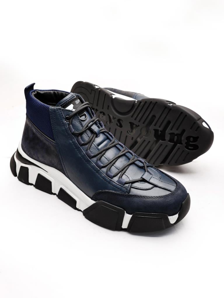 NAVY BLUE TANK HAKİKİ DERİ ERKEK GÜNLÜK SAĞLAM KISA BOT LACİVERT - 43