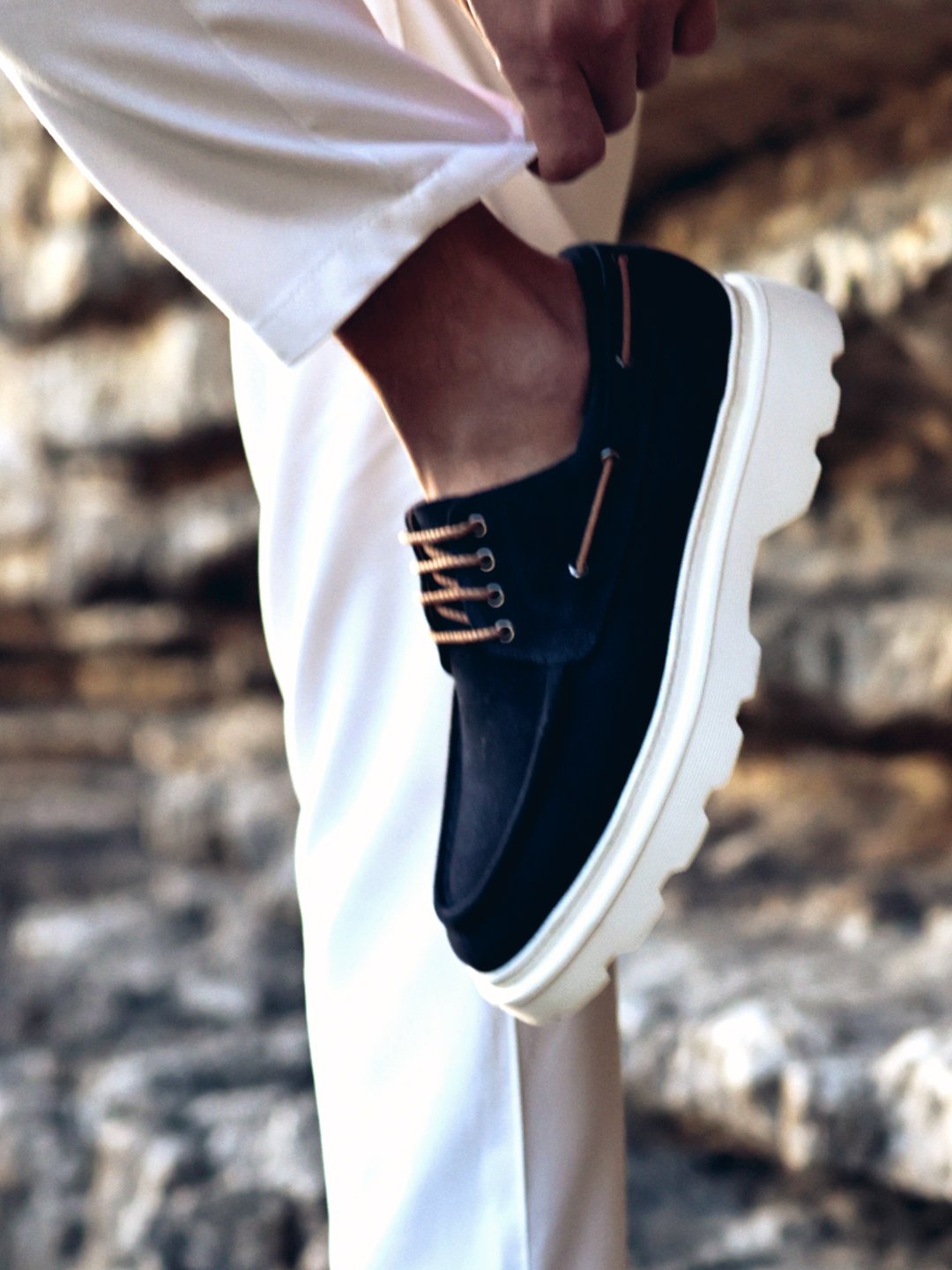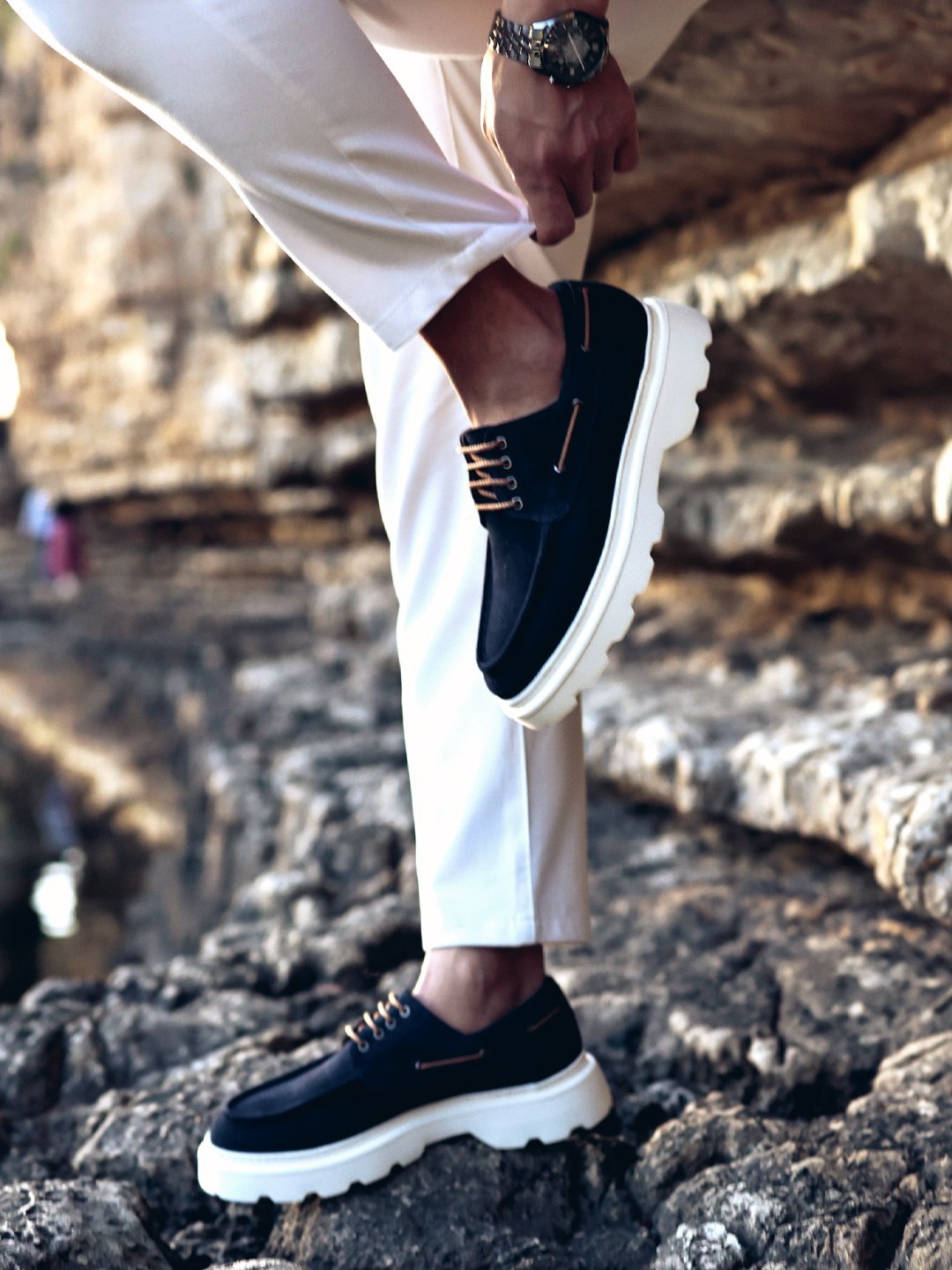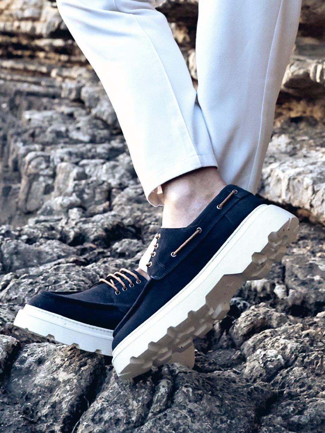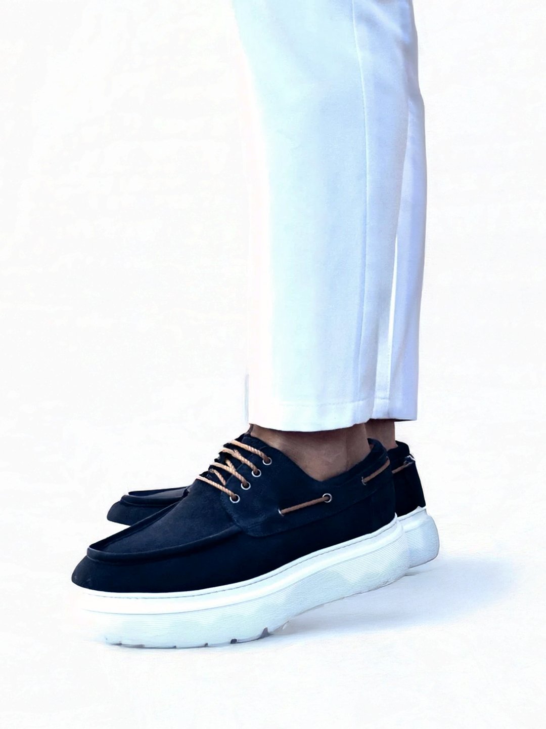 NAVY BLUE SUEDE IDEAL GENUINE DUET LEATHER MEN'S CASUAL SHOES NAVY BLUE SUEDE - 38