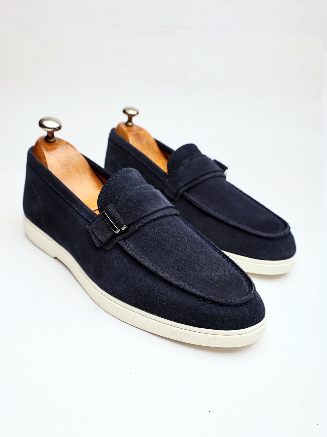 NAVY BLUE SUEDE STYLE GENUINE LEATHER MEN'S CASUAL SHOES NAVY BLUE SUEDE - 41