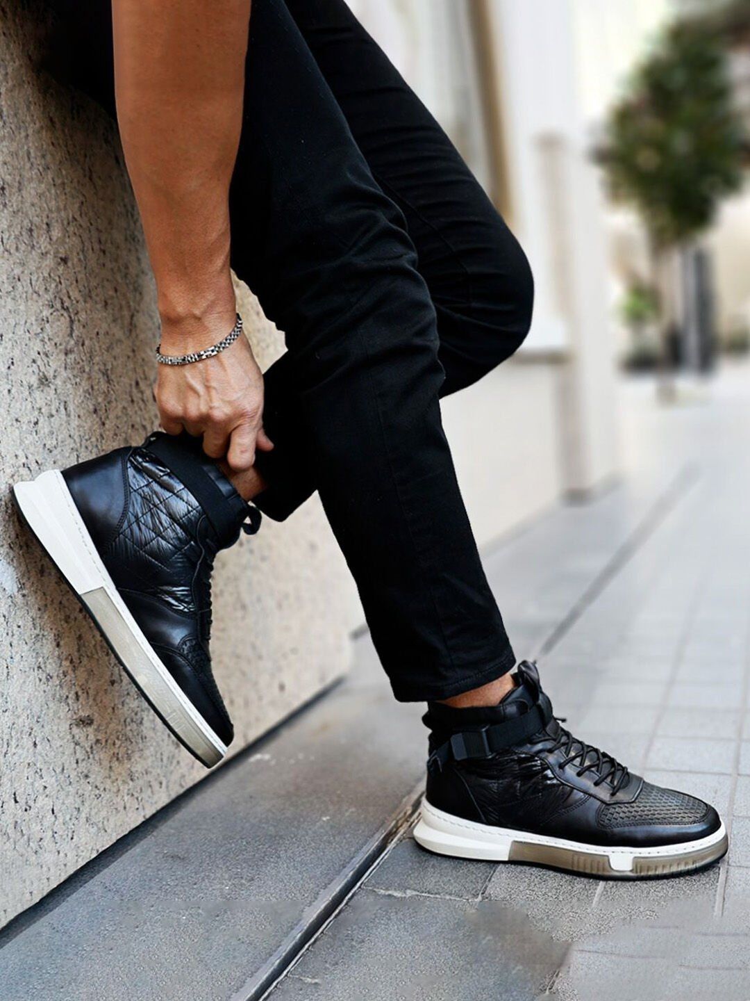 Q-STYLE 15707 STYLE BLACK MEN'S LEATHER DAILY LEATHER BOOTS BLACK - 40