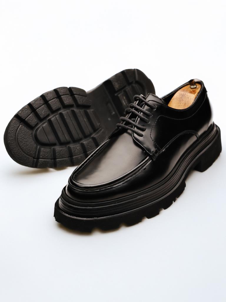 BLACK VALENTE HAKİKİ DERİ ERKEK GÜNLÜK KLASİK AYAKKABI SİYAH AÇMA - 45