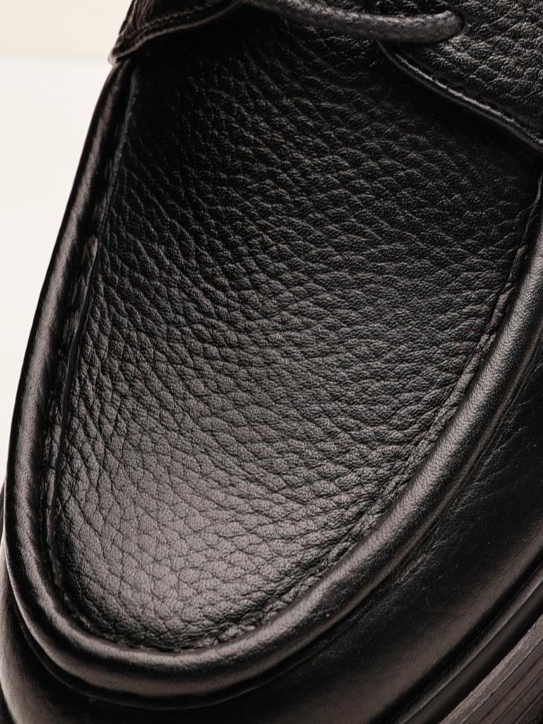 Valente Black Floater Hakiki Deri Ayakkabı, doğal derinin asil duruşunu modern bir tasarımla buluşturuyor.