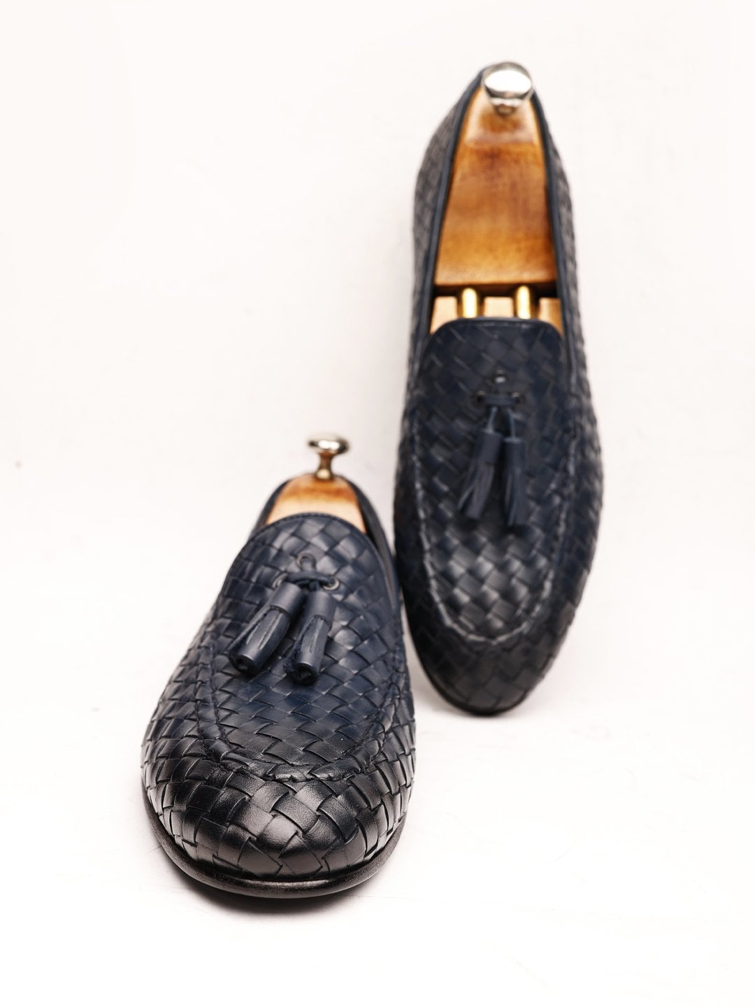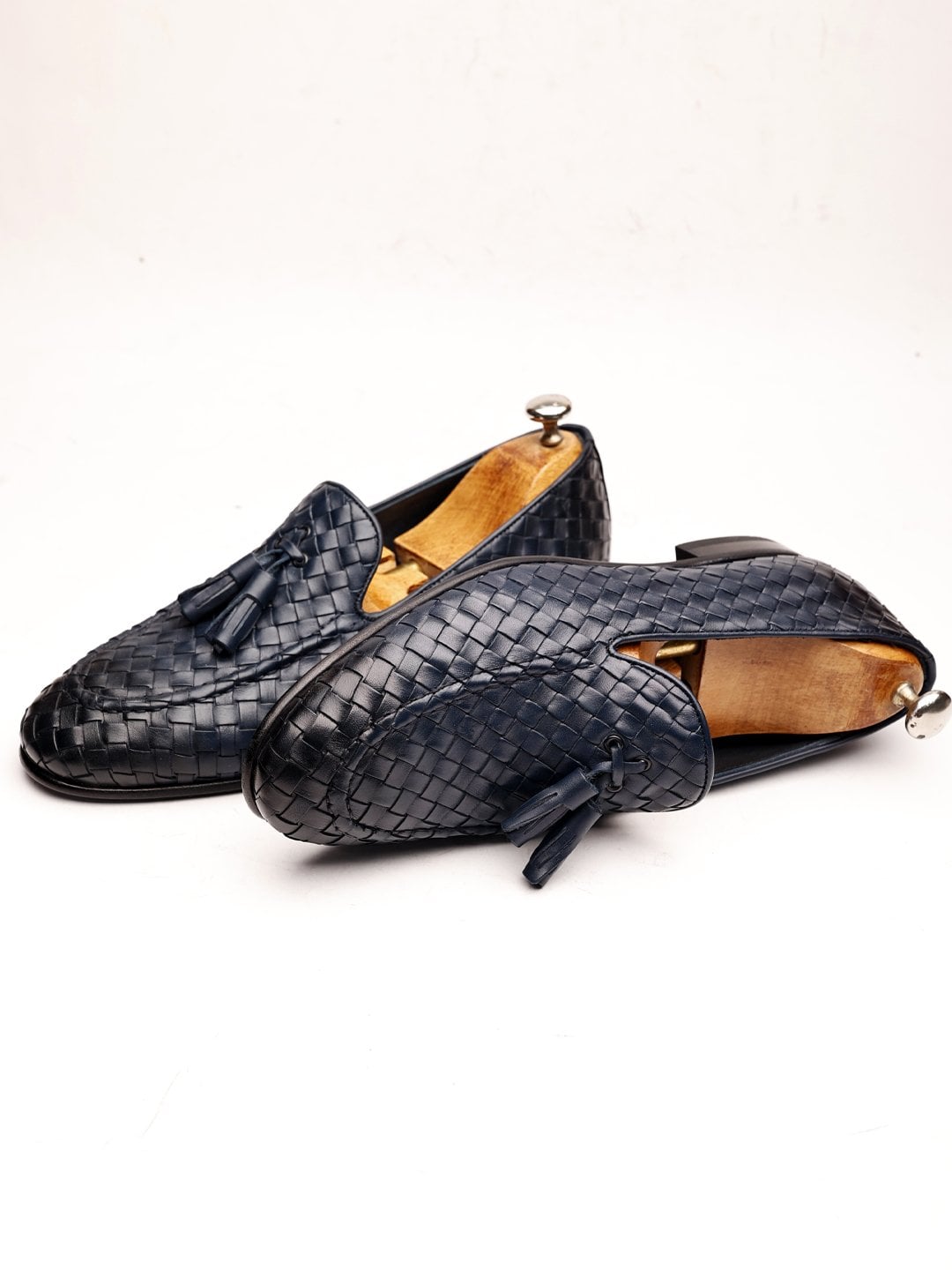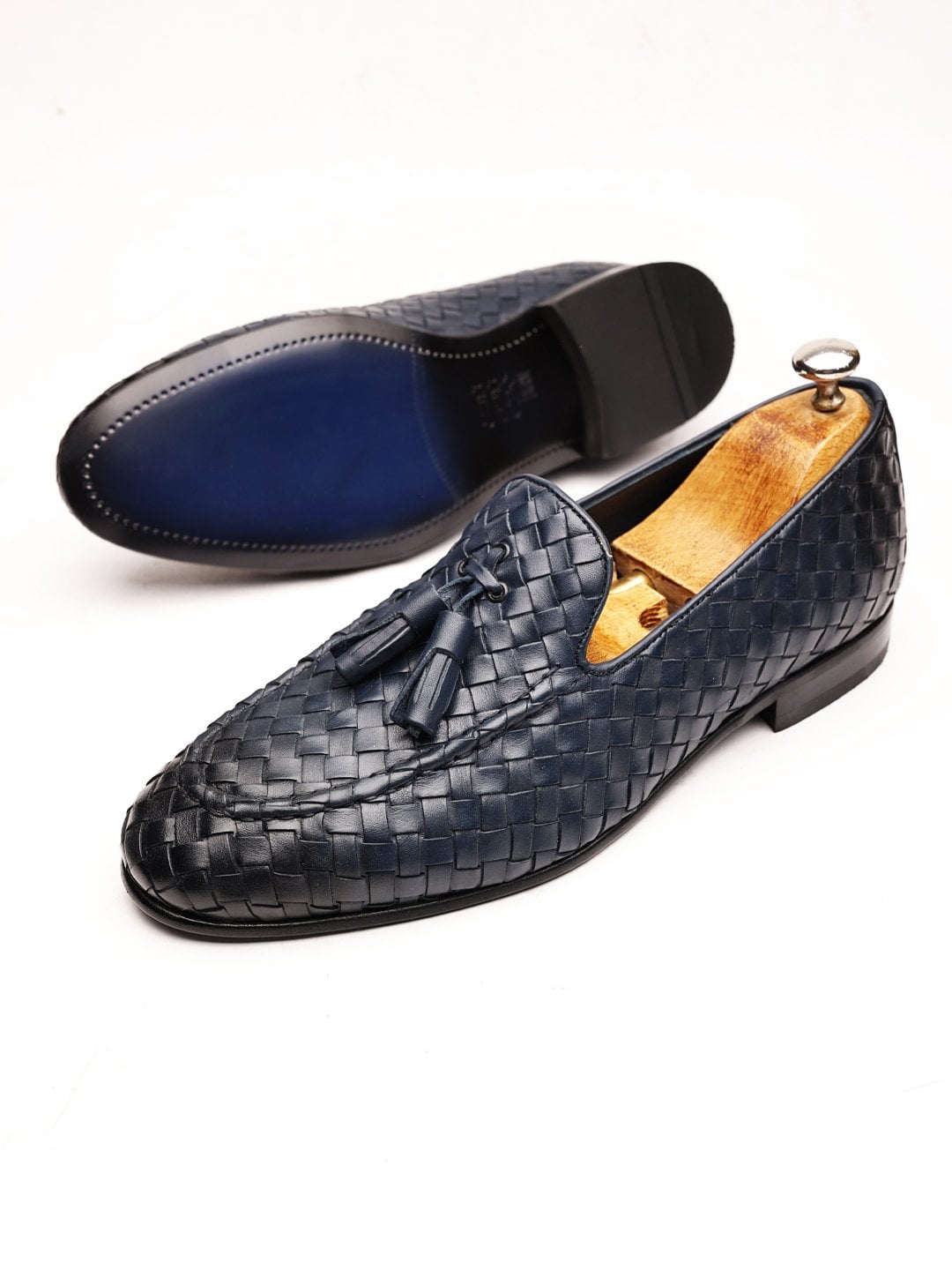 NAVY BLUE KNIGHT LACİVERT HAKİKİ DERİ ÖRGÜLÜ ERKEK AYAKKABI LACİVERT ÖRGÜ - 42