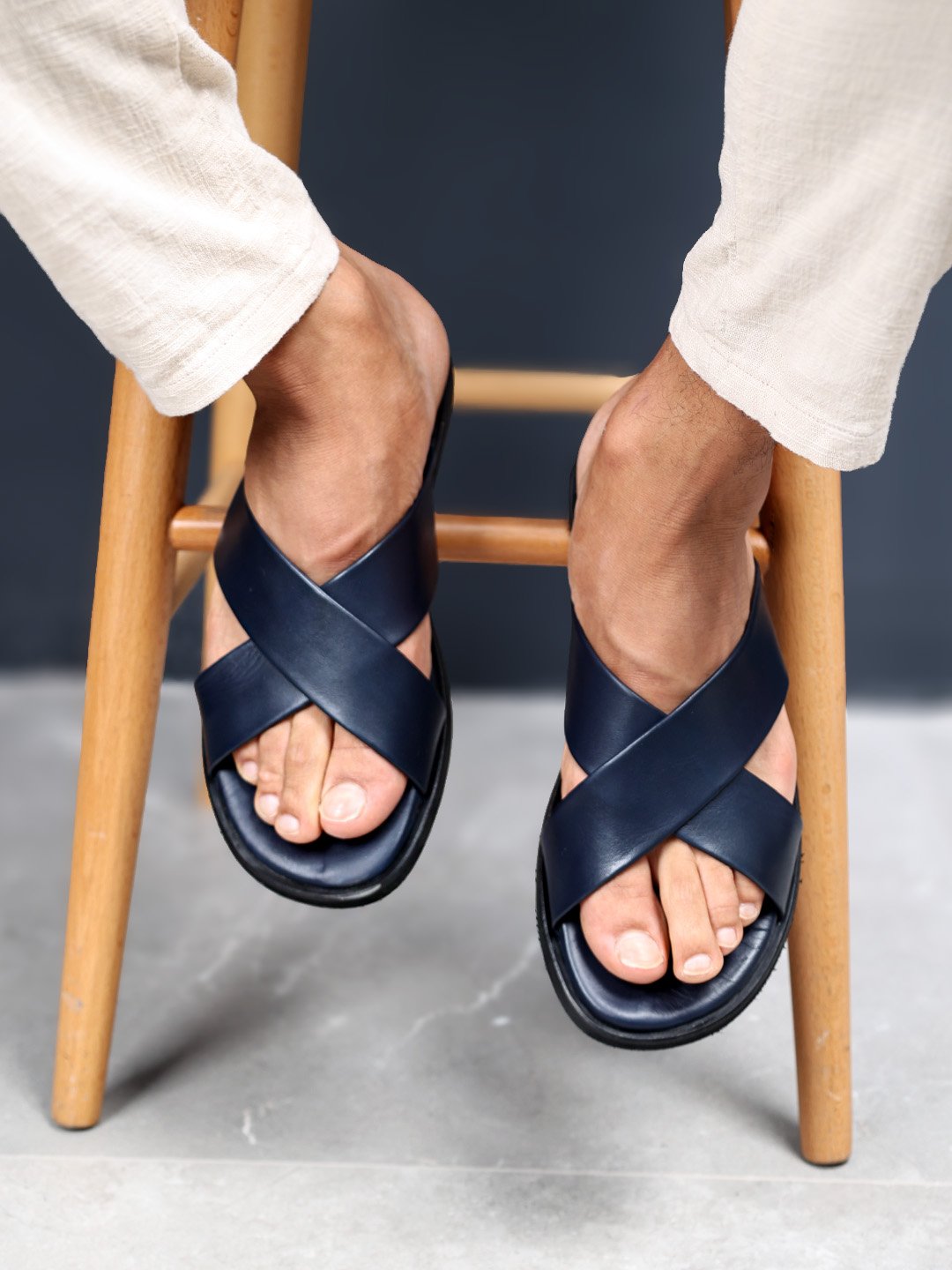 NAVY BLUE LUX DERİ SANDALET LACİVERT DERİ SANDELET LACİVERT - 43