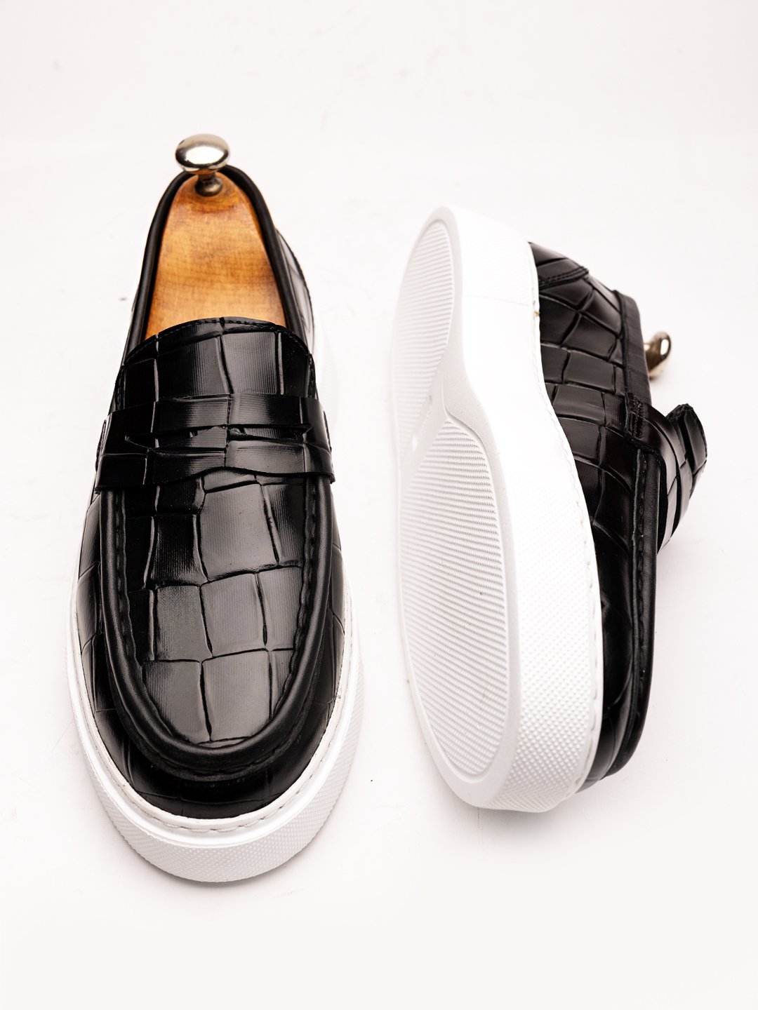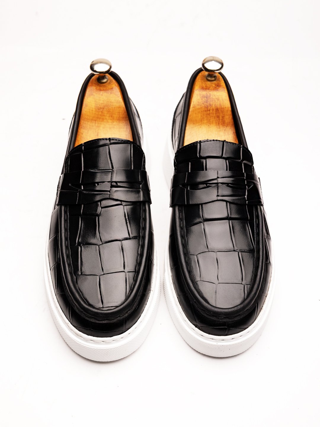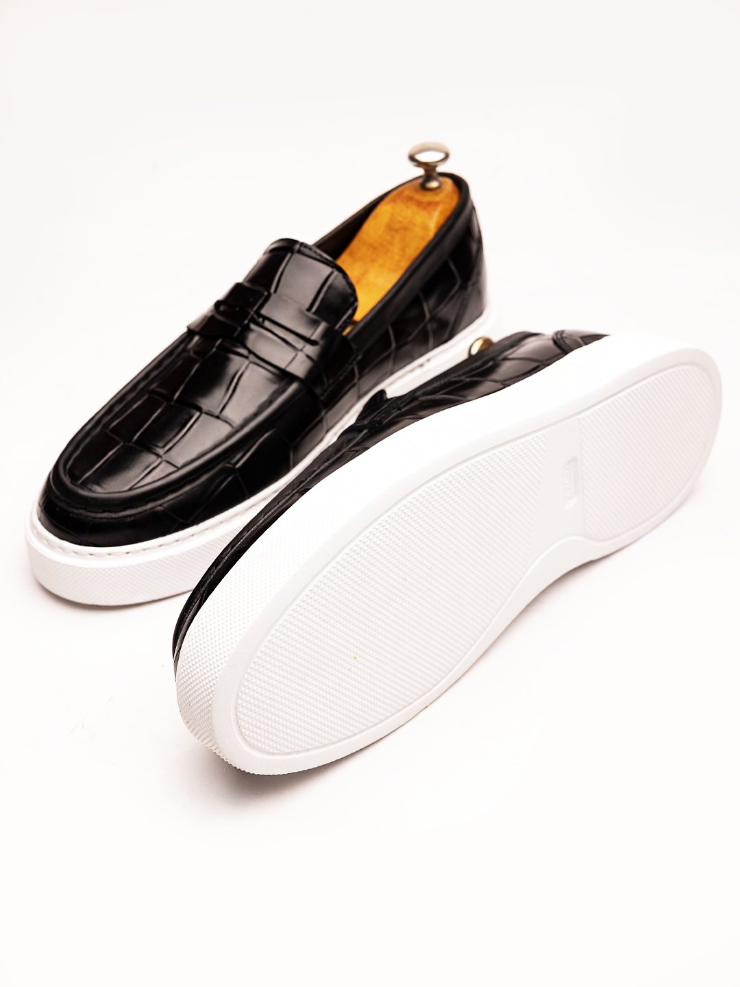 BLACK CROCO NAPOLI SİYAH DERİ ERKEK GÜNLÜK AYAKKABI SİYAH KROKO - 38