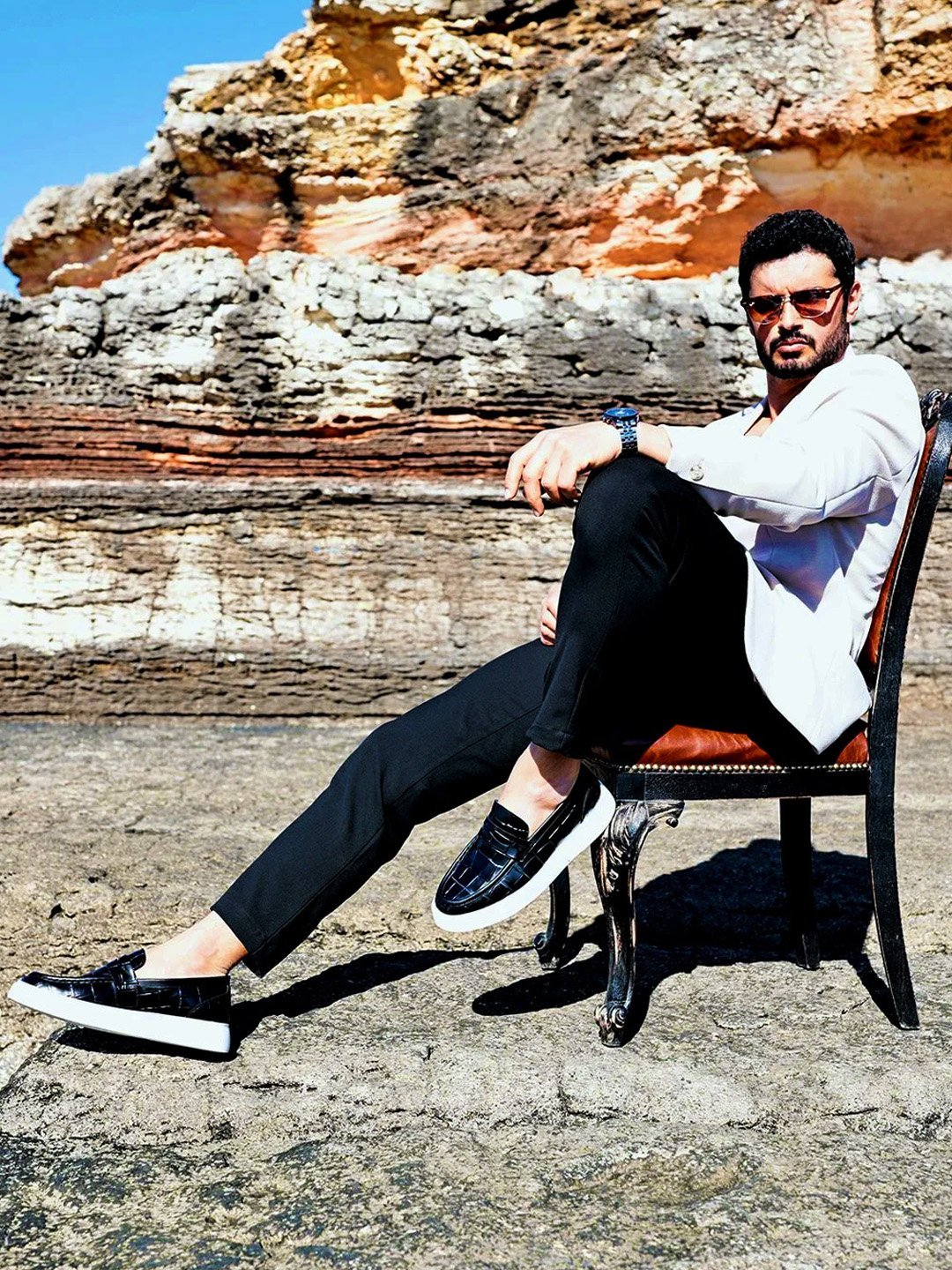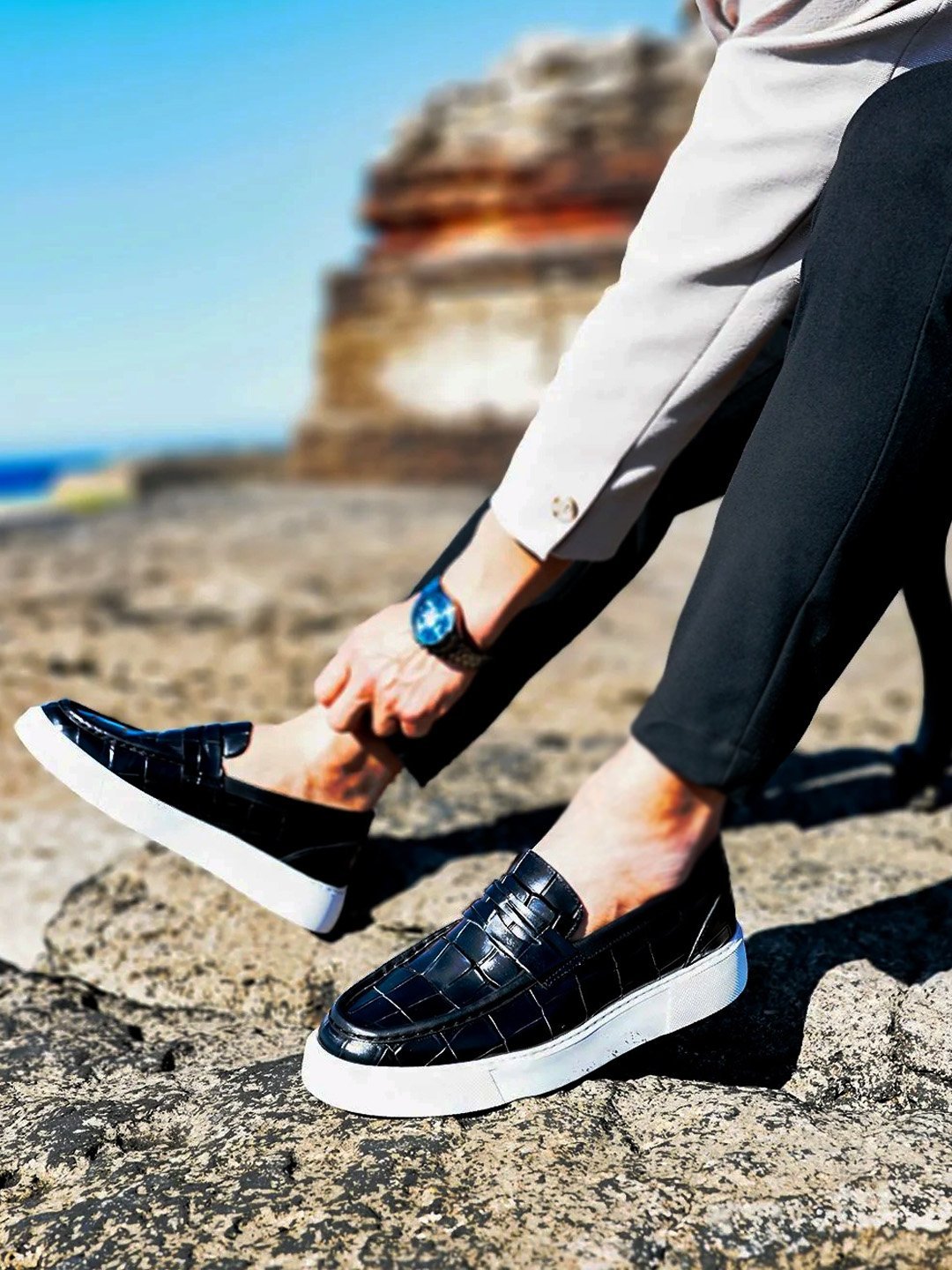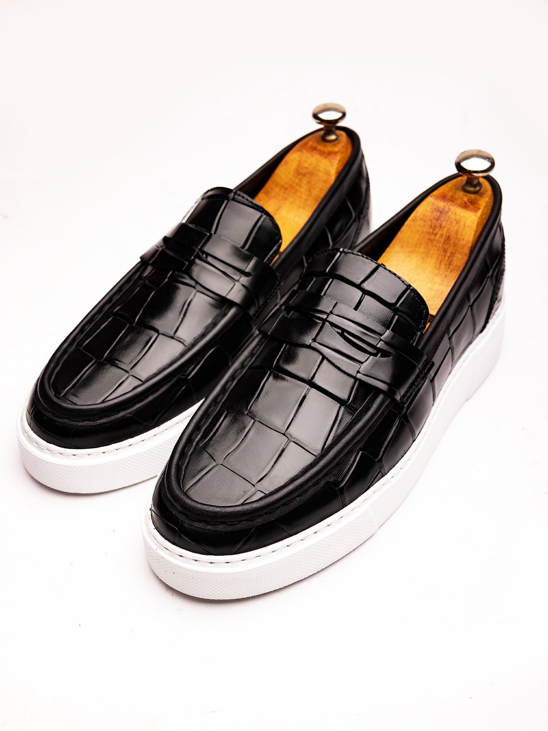 BLACK CROCO NAPOLI SİYAH DERİ ERKEK GÜNLÜK AYAKKABI SİYAH KROKO - 38