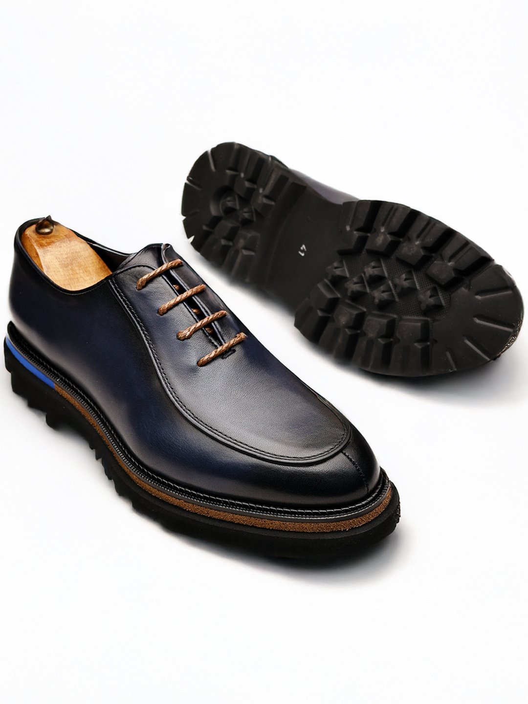 NAVY BLUE AMIRAL KALİTELİ HAKİKİ DERİ RAHAT GÜNLÜK AYAKKABI LACİVERT - 41