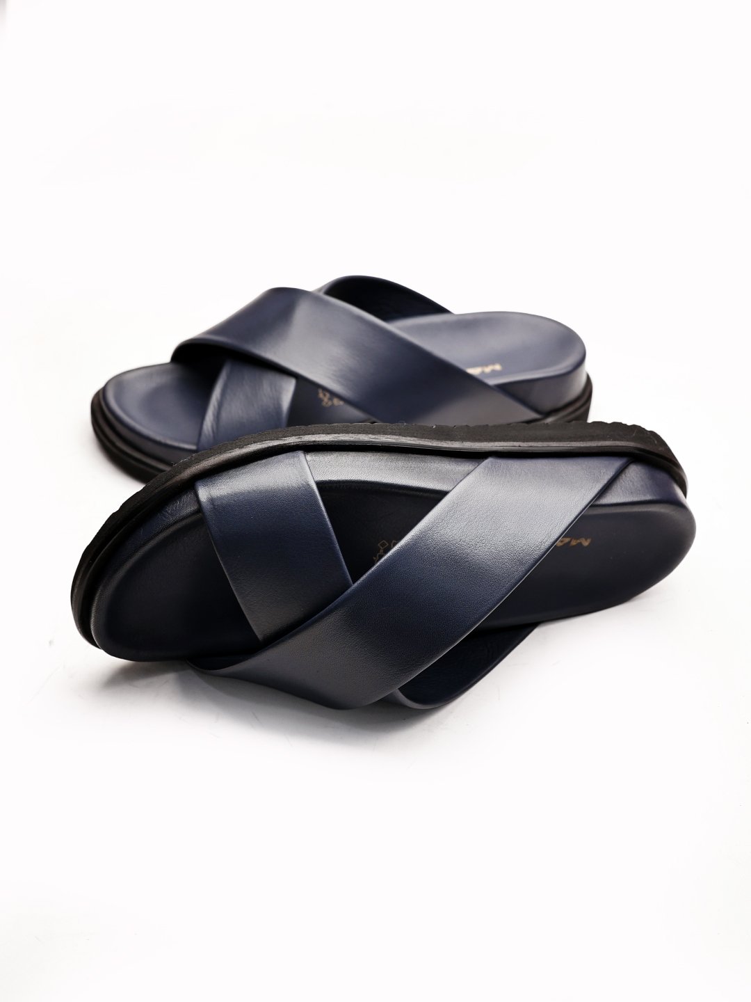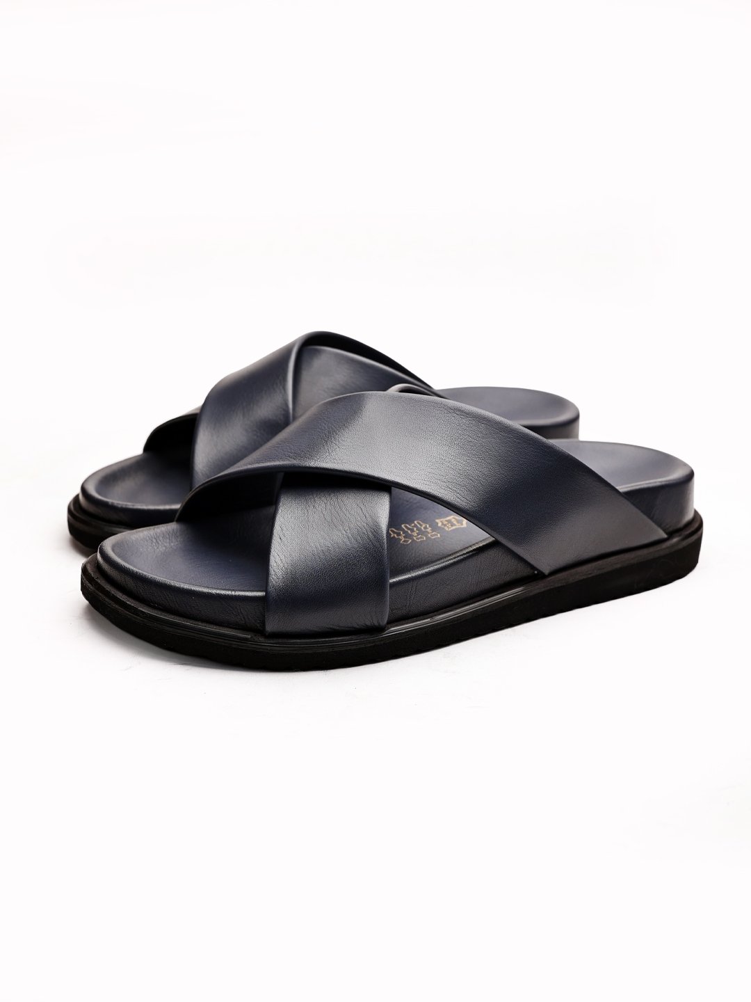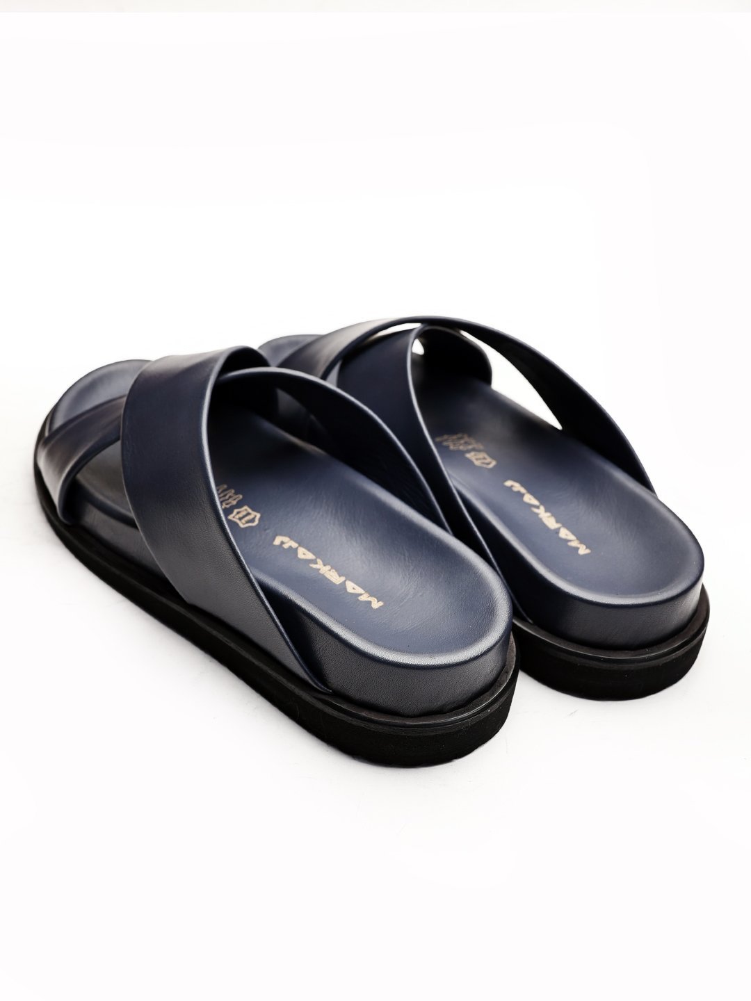 NAVY BLUE CANVAS HAKİKİ DERİ ERKEK SANDALET LACİVERT - 46